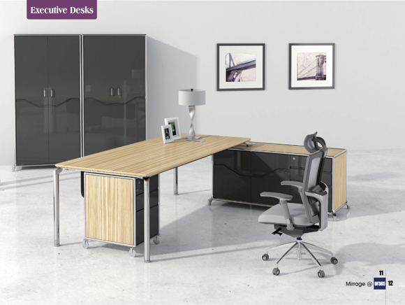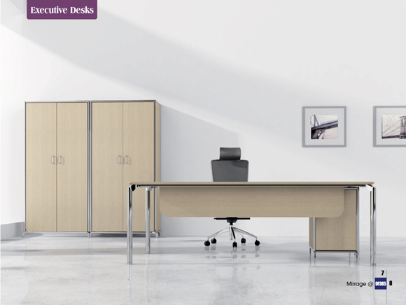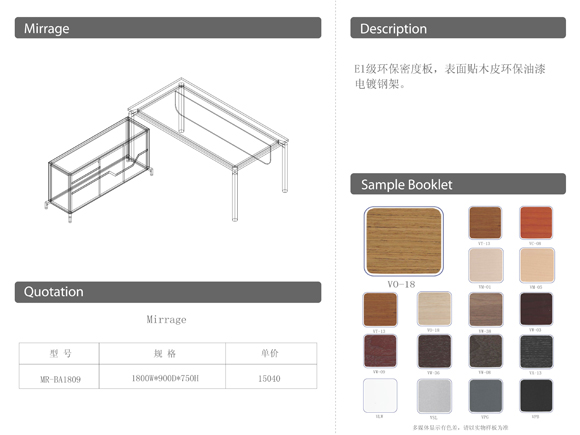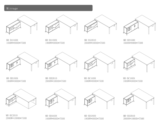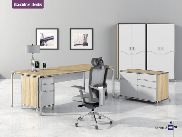 Light wood tones and stainless steel hardware brings a timeless, understated style to your office:Combining art and industry, Mirage represents the pursuit of aesthetics and is the first choice in modem office furniture:The bold design incorporates modem hardware, rich wood textures, and black lacquer finish, which combines with the docking file cabinet for a sleek look.